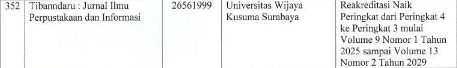 Tibanndaru: Jurnal Ilmu Perpustakaan dan Informasi has increased its accreditation status to Sinta 3 based on the Decree of the Director General of Research and Development Number 295/C/C3/KPT/2026 dated January 2, 2026. Sinta 3 accreditation is valid until 2029.