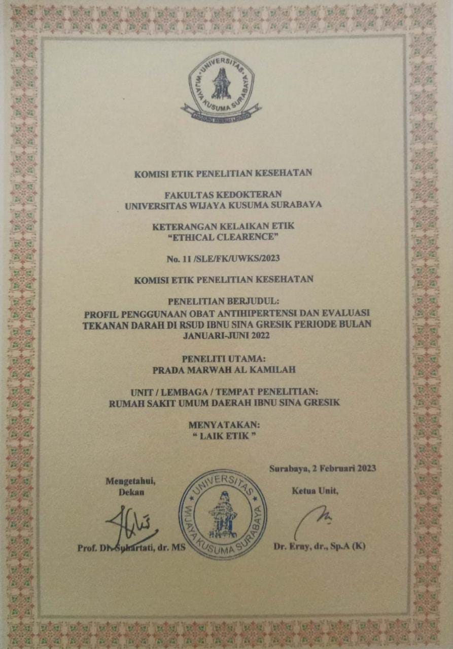 Ernawati, I., Fandinata, S. S., & Permatasari, S. N. (2022). Profil Penggunaan Obat Antihipertensi di Puskesmas Surabaya. Lumbung Farmasi, 3(2), 134–138.