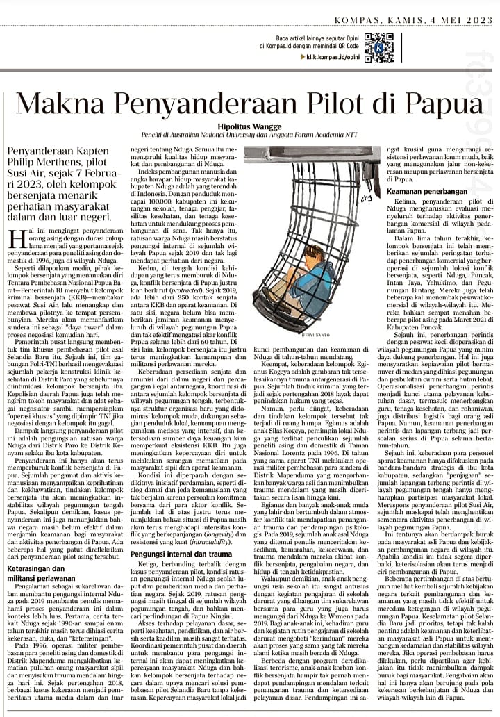 Analisis Frasa Endosentris Pada Opini "Makna Penyanderaan Pilot di Papua" Surat Kabar Kompas E-Paper Edisi 4 Mei 2023